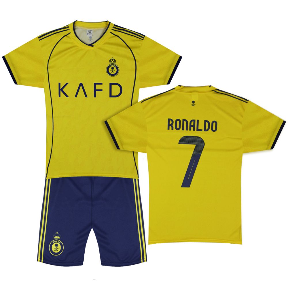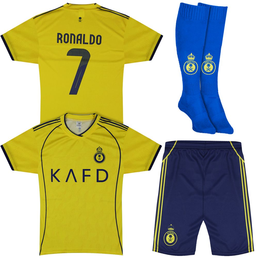 Dětská souprava dresu a šortek Ronaldo ve stylu Al Nassr pro sezónu 2024/25.