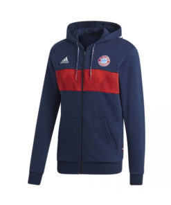 Mikina Adidas Performance pro všechny fanoušky Bayernu. Modrá a červená barva se zipem, kapucí a bočními kapsami. Klubové logo na přední straně, tři bílé pruhy na kapuci a nápis FC Bayern na stahovacích šňůrkách. 70 % bavlna. Oficiální výrobek.