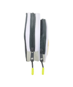 Dvoukomorový penál se dvěma zipy v bílé barvě.